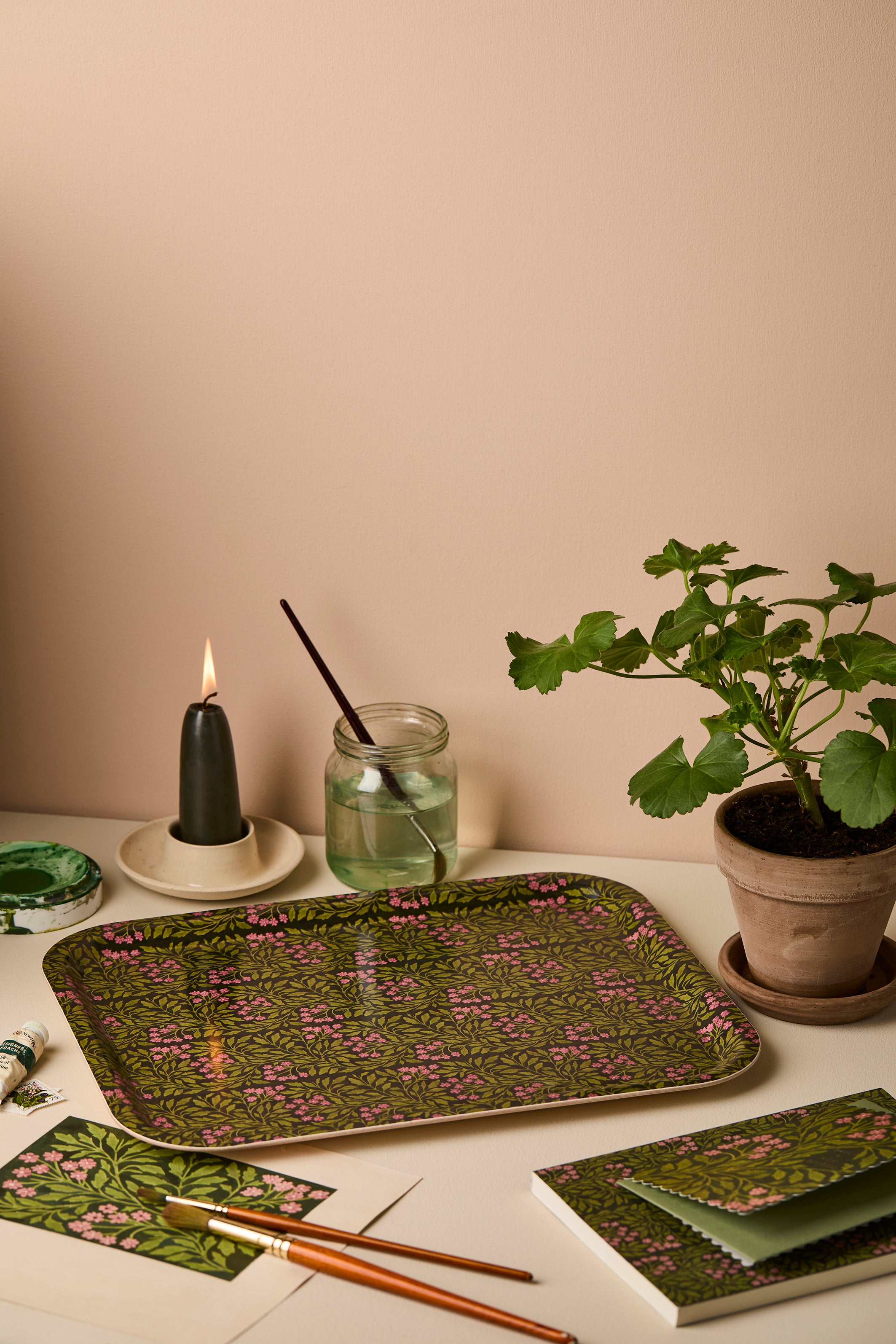 We love the botanical feel of our green flora print and think it translates beautifully onto our birch trays.